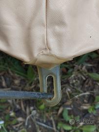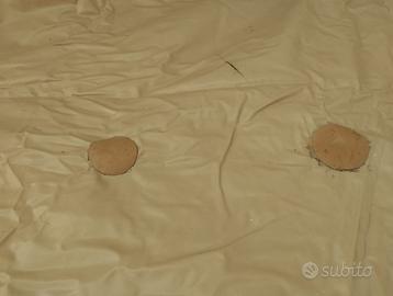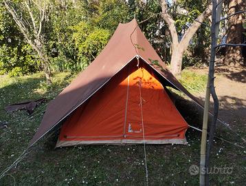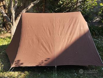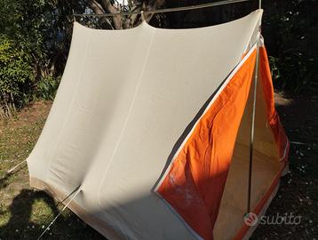 Vendo storica tenda canadese 3 posti Ferrino, in cotone (massimo comfort anche in estate) vecchiotta ma in ottime condizioni come visibile dalle foto (foto reali fatte il giorno dell'annuncio). I tessuti, le cuciture e il catino sono integri, salvo le due riparazioni del catino visibili in foto. Tutti gli anelli in gomma sono sani, così come i tiranti. Paletteria originale in acciaio con i relativi accessori e sacchetti in cotone per contenerli. Dimensioni: larghezza 200cm, lunghezza 190cm + abside (per un totale di 235cm al centro). Perfetta per chi si muove in moto o auto e anche per ospitare bambini in vero spirito da campeggio. Date le dimensioni preferirei consegna a mano o spedizione da concordare (a vs carico)