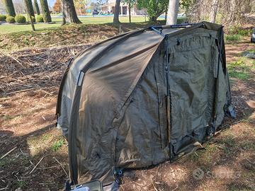 vendo bivvy cyprinus similar trakker 100t con pavimento cernierato pannello frontale e picchetti condizioni perfette, insieme sovratelo trakker 100t con i suoi picchetti. no strappi no buchi