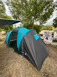 Vendo tenda da campeggio ideale per quattro persone,due camere separate nei lati e zona giorno centrale ampia,che in caso di brutto tempo ci si sta tranquillamente anche per mangiare.Elastici della paleria sostituiti,facile da montare e comoda da trasportare con la sua sacca.Vendo per cambio tipologia.Adatta a chi vuole provare l’esperienza del campeggio senza fare un grande investimento.