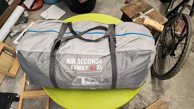 Vendo tenda 4 posti da campeggio della decathlon Quechua Air Seconds Family 4.1 XL (spesso identificata con la versione Air Seconds 4.1 F&B) è una tenda gonfiabile per 4 persone progettata per chi cerca rapidità di montaggio e comfort termico. Caratteristiche Principali Capacità: Può ospitare fino a 4 persone in un'unica camera da letto pre-montata. Tecnologia Fresh & Black: Il tessuto brevettato riflette i raggi solari per mantenere l'interno fresco e garantisce un oscuramento quasi totale (99%), ideale per riposare anche in pieno giorno. Montaggio Rapido: La struttura "tutto in uno" utilizza tubolari gonfiabili al posto dei classici pali in fibra di vetro. Si monta in circa 10-15 minuti utilizzando una pompa a mano. Specifiche Tecniche Dimensioni Camera: 280 cm di larghezza x 210 cm di lunghezza. Zona Giorno: Ampio soggiorno di circa 6,5 mq con un'altezza massima di 190 cm, che permette di stare comodamente in piedi. Peso e Trasporto: Pesa circa 14,2 - 15 kg e viene fornita in una sacca con cinghie di compressione per facilitarne il trasporto. Resistenza e Impermeabilità: Testata per resistere a venti fino a 60 km/h e a forti piogge (colonna d'acqua di 2000 mm per il doppio tetto). Dettagli Aggiuntivi Ventilazione: Dotata di finestre a rete e passaggi d'aria superiori e inferiori per ridurre la condensa. Pavimento: Il catino è a forma di ciotola per evitare l'ingresso di acqua in caso di pioggia ed è rimovibile tramite cerniera in alcuni modelli per una pulizia più facile. Accessori Inclusi: Picchetti, cordini di tensione e ganci interni per lampade.