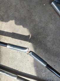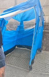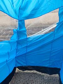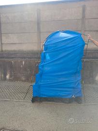 Usata per cinque anni, vendo per inutilizzo.Colore blu con cerniera interna ed esterna. Nel montarla per fare le foto purtroppo si è rotta la parte in metallo che fa curvare la bacchetta. Se "sgamati" con un pezzo di multistrato, tubo o canna potete rimediare altrimenti il pezzo si può trovare da Bertoni o su Amazon. L'avevo messa in vendita a 50 ora a 30€.