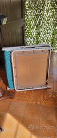 Vendo tenda inn oggetto usata pochi anni per soggiorni stagionali in campeggio, tenuta benissimo, purtroppo non dispongo di foto e di spazio per aprirla e fotografarla, quindi tutte le immagini che vedete sono facsimili ma attendibili. Ve la descrivo è in tela blu e azzurra molto simile a quella in foto, ma ha ingresso e finestra invertite dispone quindi di veranda finestra anteriore due fineste laterali di cui quella di sx apribile quella di dx (lato fornelli) fissa nella parte posteriore ha 2 camere a sacco giallo pallido con cerniera una 1/2 posti (io ci mettevo 2 brandine) e l'altra da 4 posti (io ci mettevo 2 brandine + armadietto a ripiani e comodino) la parte libera tra i due sacchi camera forma l'armadio, è dotata di tenda sottotetto e tendine laterali uguali, completamente accessoriata con 6 brandine, tavolo in legno 70x145 pieghevole (richiudibile a libro), 6 poltroncine pieghevoli in tela azzurra e bianco, 1 armadietto porta fornello con fornello (forse questo và aggiornato) tutto in ottime condizioni. La tenda è riposta in tre sacchi uno per i tubi, l'altro per la parte in tela esterna e il terzo per sottotetto e tendine, mentre gli altri accessori sono insacchetati o custoditi nel proprio cartone . Tenete presente che facendo lo stagionale io sopra al tetto della tenda ho sempre tenuto un telone a protezione della stessa