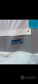 veranda conver chia 2 anni di vita comprata nuova usata una stagione sola,in perfette condizioni in più 4 pali di rinforzo tetto vendo a euro 600 . viene montata su una roulotte da 5.12 metri