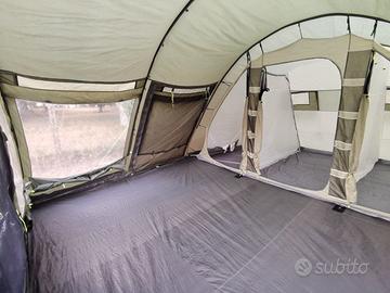 La tenda presenta un portico sopra la porta anteriore che offre protezione e una perfetta zona esterna di 1,5m, questo può essere rimosso se necessario.