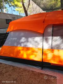 Tenda da campeggio familiare a due vani, impermeabile, protettiva dal sole e dall’ acqua in tessuto Oxford , facile da montare per attività all’aperto, escursionismo, glamping , tenda da campeggio leggera . Anno di acquisto 2025 , usata per meno di un mese . Colore arancione , misure 320*220*190 cm