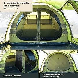 tenda da campeggio Skandika Gotland 4, con 2 camere e un'ampia veranda. per 4 persone molto comode. come nuova , montata solo 2 volte e completa di tutti gli accessori per il montaggio.