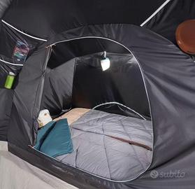 Vebdo tenda Quechua Arpenaz 4.2 nell'esclusiva versione Fresh & Black, ideale per campeggi estivi grazie alla tecnologia che mantiene l'interno fresco e buio anche in pieno sole. Stato: Nuova, mai usata. Dettagli: Acquistata e mai montata. È ancora presente il packaging originale (plastiche protettive interne intatte). Capacità: 4 persone (2 camere separate da 2 posti + ampio soggiorno centrale). Tecnologia Fresh & Black: Riduce il calore interno e garantisce il 99% di oscurità per un riposo ottimale.