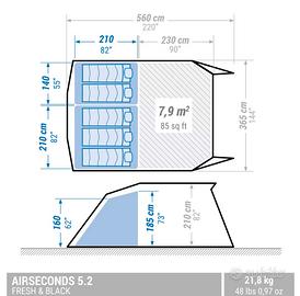 Vendo per cambio progetto tenda gonfiabile AIR SECONDS 5.2 fresh&black con 5 posti letto che si possono dividere in due camere. La tenda è stata acquistata un anno fa e usata 15 giorni ad agosto ed è in condizione pari al nuovo.
