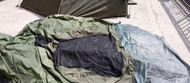 Tenda completa sotto telo guscio interno zanzariera cuscino e il suo borsone entrata pali per verandino e picchetti della Fox modello easy dome One man vendo per inutilizzo 250 trattabili consegna a mano la tenda presenta un piccolo buchino sul retro rattoppato..
