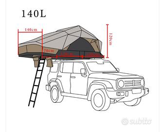 meravigliosa struttura si apre e si chiude in un bliz, usata solo 1 volta x 5 notti ed ancora nel SUO IMBALLO ORIGINALE,no strappi,no macchie o sporca, no fumatore,no animali. Pulita e precisa come nuova,completa con telo che richiude il tutto fino a terra...e ricrea una perfetta camera stagna anche al piano terra resistente a qualsiasi pioggia...3 posti sopra e 3 posti sotto,materasso ad altissima densita' anticondensa, materiale di costruzione non telo " velina" ma al tatto molto strong ne consegue che all'interno al mattino rimane tutto buio a differenza di quelle .....economiche, completa di scala,borse porta scarpe e telo copertura per viaggiare, anch'esso nuovo e intatto.... impermeabile fino a 1000 mm, resistenza raggi UV valutata 4,5 su 5, traspirabilità elevata 1164,2g m/h,misure aperta 140x240 +70(zona scala), misure chiusa 140x140, Tendalino+pavimento per chiudere la zona scaletta e a terra formando una camera stagna .... dunque anche in caso di pioggia si può scendere e rimanere al piano sotto perfettamente al coperto....bellissimo prodotto completa di tutta la sua Dotazione
