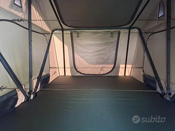 Tenda da Tetto Auto Tepui Kukenam 3 Haze Grey THULE Una tenda per tutto l'anno, costruita per resistere agli elementi atmosferici in qualsiasi stagione e a qualsiasi clima. Caratteristiche Può ospitare fino a tre persone Costituita da una combinazione di policotone di 260 g da 600 denari, resistente agli elementi atmosferici di qualsiasi stagione Il tessuto della tenda è resistente ai raggi UV e alla muffa per sopportare gli elementi atmosferici di qualsiasi stagione Le zanzariere garantiscono un'ottima ventilazione e possono essere aperte per una maggiore areazione Quattro grandi tasche interne per riporre oggetti e accessori da campeggio Comprende un materasso in schiuma ad alta densità per un maggiore comfort (disponibile Topper aggiuntivo in Memory Foam per materasso) DISPONIBILE ANCHE ALLA SPEDIZIONE DA CONCORDARE TRA LE PARTI (imballo in scatola originale). Specifiche tecniche Posti per dormire: 3 persone Dimensioni (da aperta): 244 x 143 x 132 cm Dimensioni (da chiusa): 122 x 143 x 31 cm Superficie per il sonno: 244 x 142 cm Altezza interna massima: 132 cm Peso: 60 kg Capacità di carico statico: 272 kg Minima ampiezza barre: 82 cm Struttura di base: Alluminio con foglio in fibra di vetro isolato Tessuto di rivestimento: Cotone e poliestere 260 g; tessuto ripstop 600D con copertura ventilata impermeabile; resistente a UV e muffa Telaio interno: Alluminio avvolto 5/8" (16 mm) Zanzariere: Presenti Stagioni: Tutte le stagioni