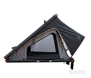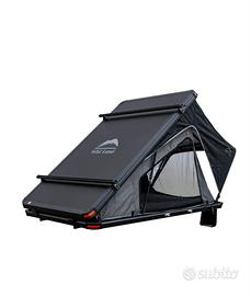 La tenda da tetto FISTERRA con telaio rigido in alluminio e scocca dal profilo ultrasottile alta solo 18 cm (senza barre).