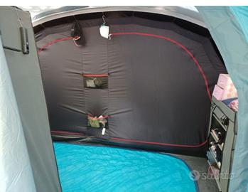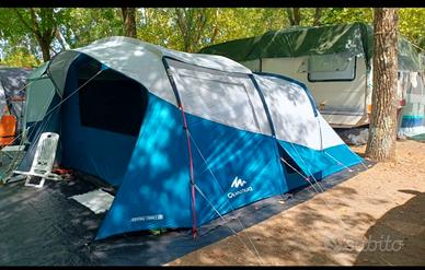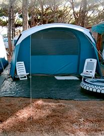 Tenda perfetta, spaziosa e facile da montare, 5 posti, 2 catini con pavimento integrato e sistema fresh&black che assicura buio totale e gran ricircolo d'aria. Usata 2 estati per 15 giorni e un'altra volta per un ponte lungo a giugno. Pulita con cura dopo ogni utilizzo , sia internamente che esternamente ( no uso di prodotti aggressivi per proteggerne l' impermeabilità ) Zip, zanzariere e tessuto integri. Non entra una goccia d'acqua all'interno anche dopo pioggie consistenti. Riposta sempre nella sua sacca originale e tenuta in casa. Consegna a mano, no spedizione. No perditempo e affaristi.