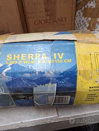 TENDA DA CAMPEGGIO SHERPA IV 330X240X160/150 +MATERASSO GONFIABILE DUE PIAZZE + FORNELLETTO DA CAMPEGGIO IN BUONE CONDIZIONI . IL TUTTO USATO PCHISSIME VOLTE