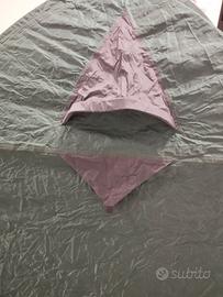 Tenda Ferrino 3 posti, misure cm 210x200 h 140 cm. Doppio ingresso, catino con doppia zanzariera, 2 prese d' aria laterali, alamari per fissare i teli della tenda aperti. Si monta e si smonta rapidamente e viene conservata nella sua custodia. La tenda è in perfette condizioni.