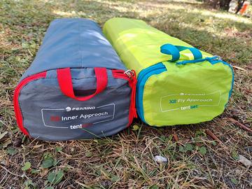 Tenda Ferrino 2 posti pari al nuovo. Pratica, leggera e velocissima da montare. Pali e picchetti in alluminio. Canotto in poliestere isolante e waterproof (8000 colonne). Rivestimento verde lime waterproof (3000 colonne). Comoda doppia veranda spaziosa. Cuciture e doppie cerniere in ottimo stato. Ideale per campeggio e bivacco.