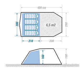 Tenda spaziosa e robusta, ideale per campeggio e vacanze in famiglia.