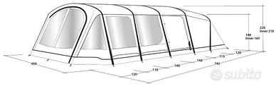 Vendo tenda gonfiabile Outwell Queensdale 8PA come nuova, usata solo per 10 giorni in tutto, compreso telo di protezione da mettere sotto. Dimensioni 7,45m x 4.50m, comodissima, si monta in meno di 30 minuti!
