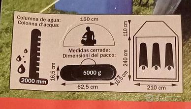 Tenda a cupola Rocktrail per max 3 persone. Dimensioni sacca: cm. 62,5 x 16,5 x 16,5. Peso 5 kg.