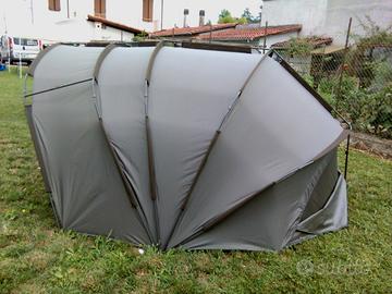 Completa di tutti gli accessori di serie. Sacca di trasporto, pali trasversali, 15 picchetti originali, stuoia di ingresso e kit di riparazione con tessuto originale