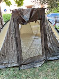 Vendo tenda Nash Titan Globetrotter 2 man. La camera interna è in buone condizioni A parte un forellino nel pavimento e uno minuscolo nella zanzariera. Il telo esterno invece si presenta un po’ rovinato , ha la guaina termosaldata che si sta staccando e sta perdendo l impermeabilizzazione. Ho comunque passato una tanica di impermeabilizzante fabsil. Diciamo che per l’estate o quando non piove e ‘ ok . Vendo con picchetti e sacca. Disponibile alla spedizione da verificare la tariffa con corriere ( date le dimensioni).