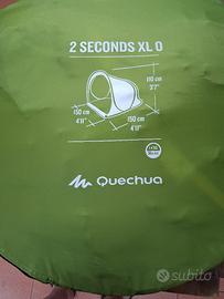 vendo tenda 2posti praticamente nuova completa di paletti spiaggia misure: da chiusa diametro 60 cm ,aperta 150x150x110cm,peso 1.4kg