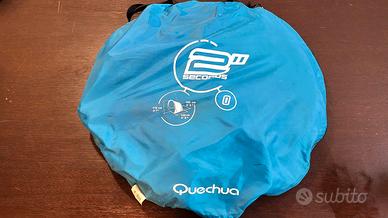 Vendo tenda Quechua 2 Seconds da 2 posti, colore blu, con sistema di apertura automatica super rapida (si monta in pochi secondi).