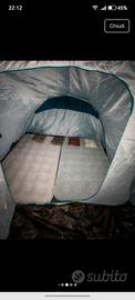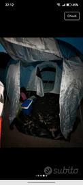 Vendo tenda in stato pari al nuovo, acquistata e utilizzata una sola volta (c'è anche l'odore di prodotto nuovo), le foto della tenda dall'esterno sono state fatte prima di tirare e fissare le corde con i picchetti, perfetta nella sua struttura e dotata di tutti i suoi componenti, tenda praticamente nuova, acquistata per 139 euro