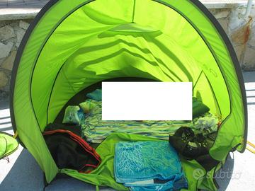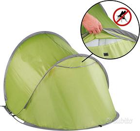 Questa tenda ad apertura rapida si lancia semplicemente in aria e si monta da sola in pochi secondi; inoltre è facile e veloce da richiudere e riporre