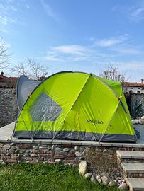Vendo tenda Alpine Hut IV di Salewa in buone condizioni , Tre stagioni , ideale per 4 /5 persone, e offre una protezione ottimale dalle intemperie. Ottima ventilazione e resistenza al vento Dispone di veranda molto ampia dove è possibile cucinare o stivare materiale. Paleria in leggero alluminio 7001 T6 cerniere e tiranti autoportante e pavimento separato incluso e tasche interne , finestrini con zanzariere Kit riparazione incluso materiale: poliestere taffeta PU / Nylon Alcuni segni di usura: In alcuni punti sul telo è presente della leggera muffa che non compromette la sua impermeabilità, i tiranti in corda (leggermente allentati )sono non certo come nuovi ma svolgono comunque la loro tenuta . Peso 9 kg Ingombro sacca 62 x 30 x 21 cm Colonna d'acqua pavimento (mm) 5.000 Colonna d'acqua telo esterno (mm) 2.000 Dimensioni 330 x 260 x H 175 cm