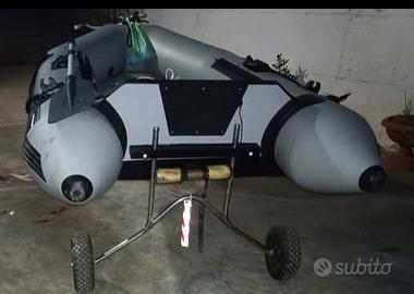 Tender 3.2 metri gonfiabile con chiglia drop stitch( tecnologia sup) gonfiato diventa rigido. Remi, ancora ad ombrello, sedile, kit per ripararlo, ed un rullo di alaggio. Non ha perdite valvole funzionanti. Una camera travasa verso l'interno da 4 camere funzionano 3(si puo riparare) ma non si sgonfia ed in caso di foratura in mare galleggia comunque. Il carrello non e' in vendita. Trattabile.