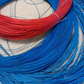Lotto Tennis Per Incordature. Passa corde forato protettivo ai fori della racchetta e microfilo nylon colorato per fermare le incordature la primo e ultimo giro. oltre 400 MT. Tutto come da foto, rimasto ritirato in box di plastica al riparo da luce e umidità. Perfetto.