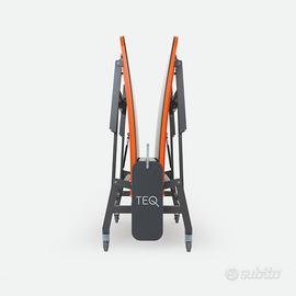 Il tavolo Teq SMART può essere ripiegato su un solo lato per creare un muro di rimbalzo su cui giocare da soli o in due. La rete rigida permette alla palla il continuo rimbalzo per garantire un gioco dinamico e continuo. La robusta struttura del tavolo Teq SMART offre prestazioni di gioco professionali.