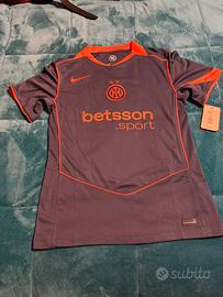 Vendo maglietta Inter taglia S originale causa taglia errata. Ancora con cartellino, mai indossata. aggiunta di patch e numero e nome giocatore.