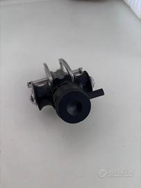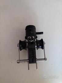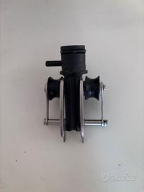 Testata roller MVD. Monta puleggie da 14mm (si possono montare anche quelle piu grandi) ed ha guarnizione nuova e clip nuove. Includo la spina in derlin La testata è stata usata, funziona perfettamente, ma ha una delle due puleggie un po consumata (spara ma non gira molto bene) e come si vede in foto la parte in acciaio a SX ha preso qualche botta dall’elastico. Vendo per abbandono progetto