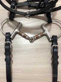 Vendo testiera per cavallo marca Winner Special, taglia Cob, in cuoio con clincher nichelati, completa di morso e redini in cuoio e gomma. Usata poche volte è in ottimo stato.