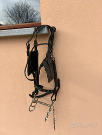 Vendo testiera da attacchi per cavallo (singolo o pariglia), realizzata in cuoio nero robusto. Ideale per carrozze d'epoca o amatori del tiro.