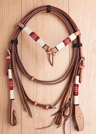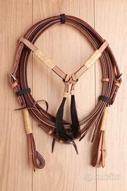 Bellissima testiera per cavallo western/equitazione in cuoio con redini lunghe 180cm
