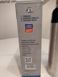 thermos 1 litro, stile acciaio, mai usato, con scatola originale