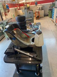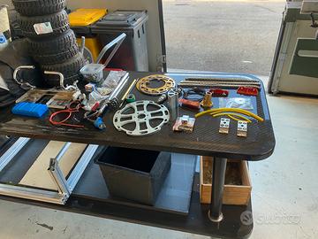 Kart equipaggiato di telemetria mychron 4, in buone condizioni generali, completo di ricambi, attrezzature per convergenza, attrezzatura per montaggio pneumatici, 3 sedili di diverse misure, telo coprikart, 2 carrelli porta kart dei quali uno per carico scarico meccanizzato. Tutto come da foto.