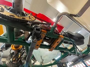 Vendo Tony kart mitox motore originale vortex 100cc, telaio in ottimo stato ,motore con 10 litri da revisione totale, compreso di carrello porta kart, volante radiatore barra telaio e disco freno originali, telemetria aim mychron dell’epoca , silenziatore in carbonio nuovo e varie corone