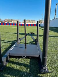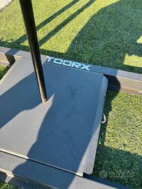 La Slitta Cross-Training Toorx è un attrezzo robusto in acciaio verniciato a polveri, ideale per potenziamento e allenamento funzionale (CrossFit/Cross Training), caratterizzato da un peso di circa 33-40 kg, un'asta per carichi olimpionici (diametro 50mm), e la possibilità di usare imbracature/power rope per una versatilità massima.