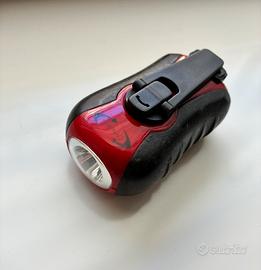 Torcia a dinamo, led, ricaricabile con manovella, no batterie. Disponibili due intensità di illuminazione, funzione lampeggio.