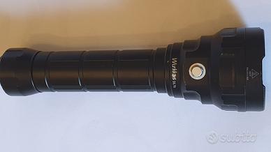 Torcia subacquea usata solo 3 volte vendo causa doppio regalo. Perfetta, luce eccezionale 13000 lumen, 4 led, interruttore magnetico 4 variazioni. Fino a 100 metri di profondità, robustissima in alluminio anodizzato, 400 gr, In dotazione 2 pile speciali ricaricabili con carica batterie in dotazione. Adatta anche per esterno, non surriscalda.