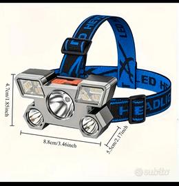 Torcia frontale, 5 Led cambio illuminazione, usb