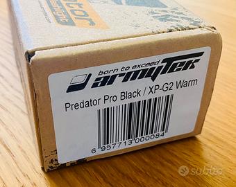 Torcia Led Armytek, il modello è fuori produzione, usata in buone condizioni, sono presenti strisci dovuti al normale utilizzo. 640 Lumen. Distanza fascio 400m. Batteria 18650 Li-Ion 2500mAh. Accessoriata con clip, spaghetto, pulsante, custodia, ecc. compreso caricatore universale per 1 batteria.