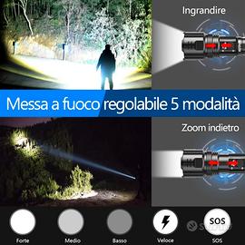 Potente torcia LED professionale, confezione da 2, 150.000 lumen, ricaricabile, con zoom, tattica e 5 modalità di illuminazione per campeggio, escursionismo e pronto soccorso [Classe energetica A+++]