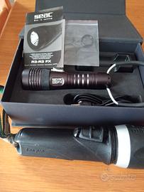 Torcia led Seac R3 FX in ottime condizioni compatta ottimo fascio luminoso concentrato ideale per pesca in tana,sicura interruttore per accensione accidentale completa di accessori di ricarica usata solo due volte nessun difetto. In più cedo torcia led Mares EOS Pro in ottime condizioni predisposta per batterie stilo alcaline, fascio luce concentrata ottima durata per molte ore. Prezzo singola Seac 40€ Mares 30€.