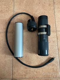 Vendo torcia subacquea tipo "speleo" così composta: testa led marca Light Monkey da 24w, potenza 2000 lumen 6000 Kelvin, 4 livelli di potenza regolabili con "pulsante" a sfioro, cavo e/o cord, maniglia goodman, moschettone. Batteria Diving-Torches al litio, 12v 15ah, contenitore in alluminio, cavo con e/o cord, carica batteria. Alla massima potenza della testa ha una autonomia di 5 ore. Richiesta 400 euro trattabili più spese di spedizione.