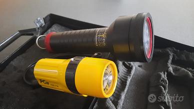Torcia subacquea ad alta resistenza a tenuta stagna. Lunghezza 205 mm, peso 470 gr. (in acqua 160gr.), illuminazione 4 Led da 3W l'uno, batterie stilo AA da 1,5V, profondità di impiego 150 mt garantita.